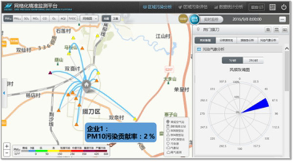 在掌握各类污染源排放状况的基础上,利用空气污染数值预报模式模拟污染物质量浓度的分布特征, 研究区域空气污染物输送扩散的规律,监控污染源对主城区大气环境质量的影响,有效控制重点工业污染,改善城市大气环境质量。