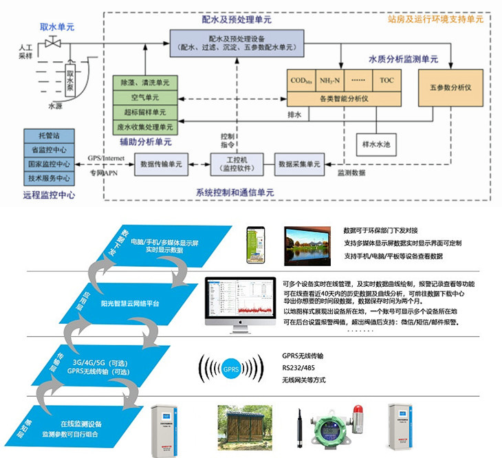 排污企业监测站房、数采仪(上传至环保局数据中心)定制化采配水系统、监测站房及配套设施。